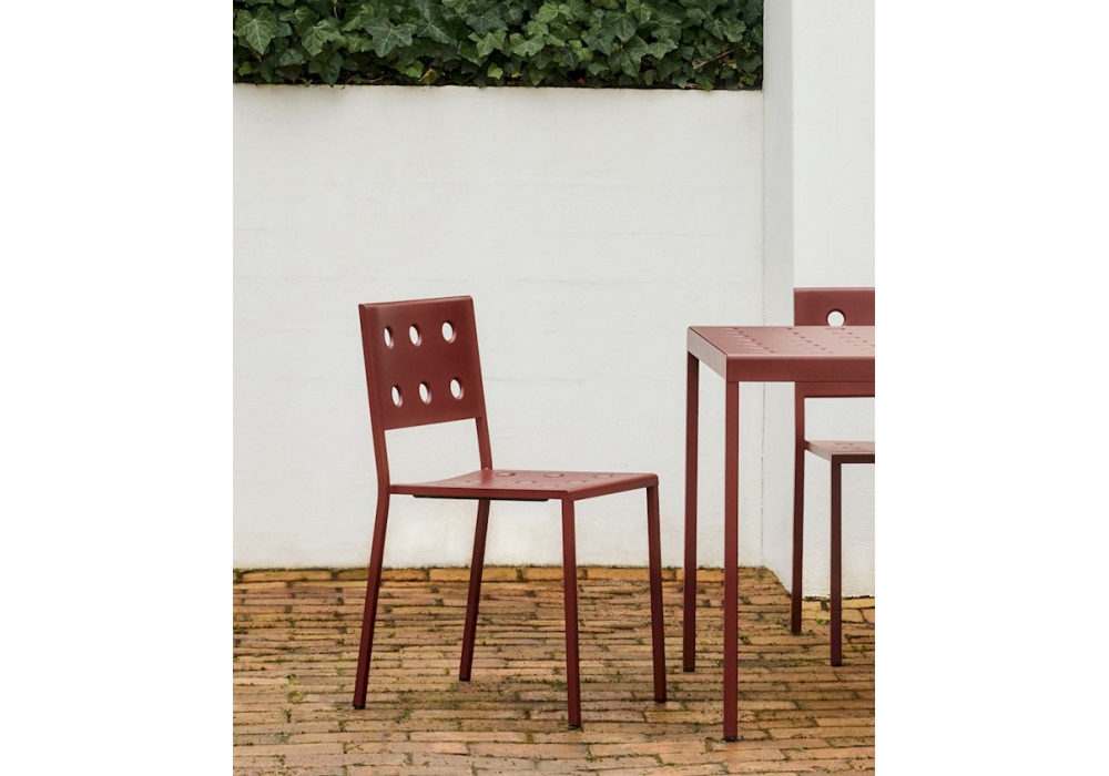Balcony von Ronan & Erwan Bourrollec für Hay entworfen, ist ein Sthul für den Außenbereich aus pulverbeschichtetem Stahl mit Zweikomponentenbeschichtung; Eine Grundierung und Pulverbeschichtung für den Außenbereich, die eine Barriere gegen korrosive Elemente bietet und es für den Außenbereich geeignet macht. Verfügbar in mehreren Ausführungen.