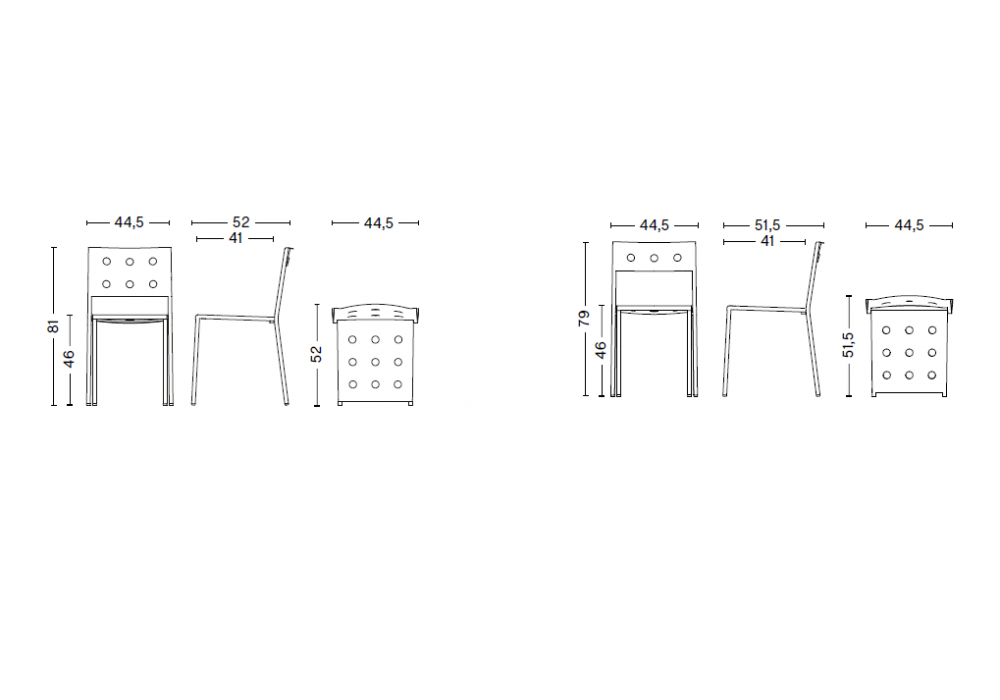 | Abmessungen | 44.5 x 51.5 x H 79 cm; 44.5 x 52 x H 81 cm. |