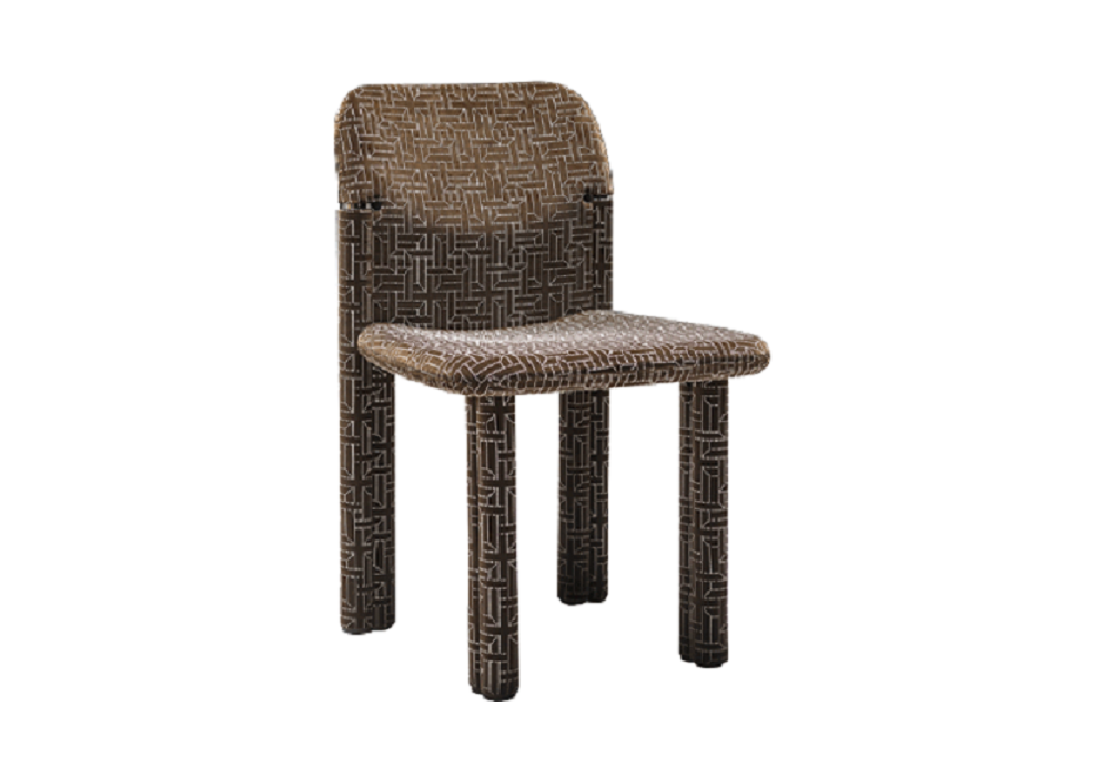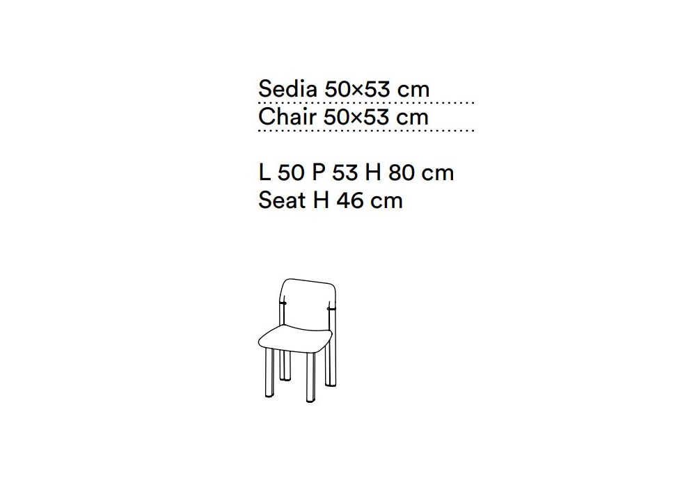 Sempronia, von Tobia Scarpa für Tacchini entworfen, ist ein Stuhl mit gepaarten Beinen, der durch die Kreuzung zweier Zylinder entsteht, die bis zur Rückenlehne reichen und mit der sie durch einen Metallring verbunden sind, der in verschiedenen Ausführungen erhältlich ist. Polsterung in verschiedenen Stoffen und Farben.