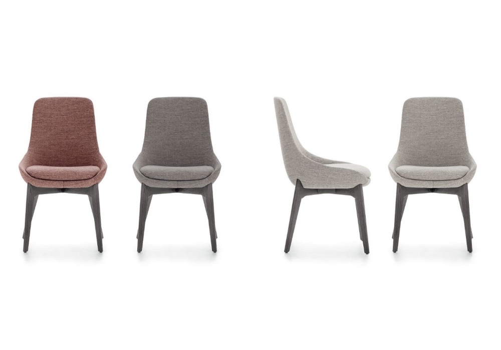 Linear von Edi und Paolo Ciani für Ditre Italia entworfen, ist ein Stuhl mit Holzbeinen, Sitz und Rückenlehne mit Stoff- oder Lederbezug. Auch in der Mix-Version erhältlich, Innenausstattung aus Stoff mit Seiten und Rückseite aus Leder.