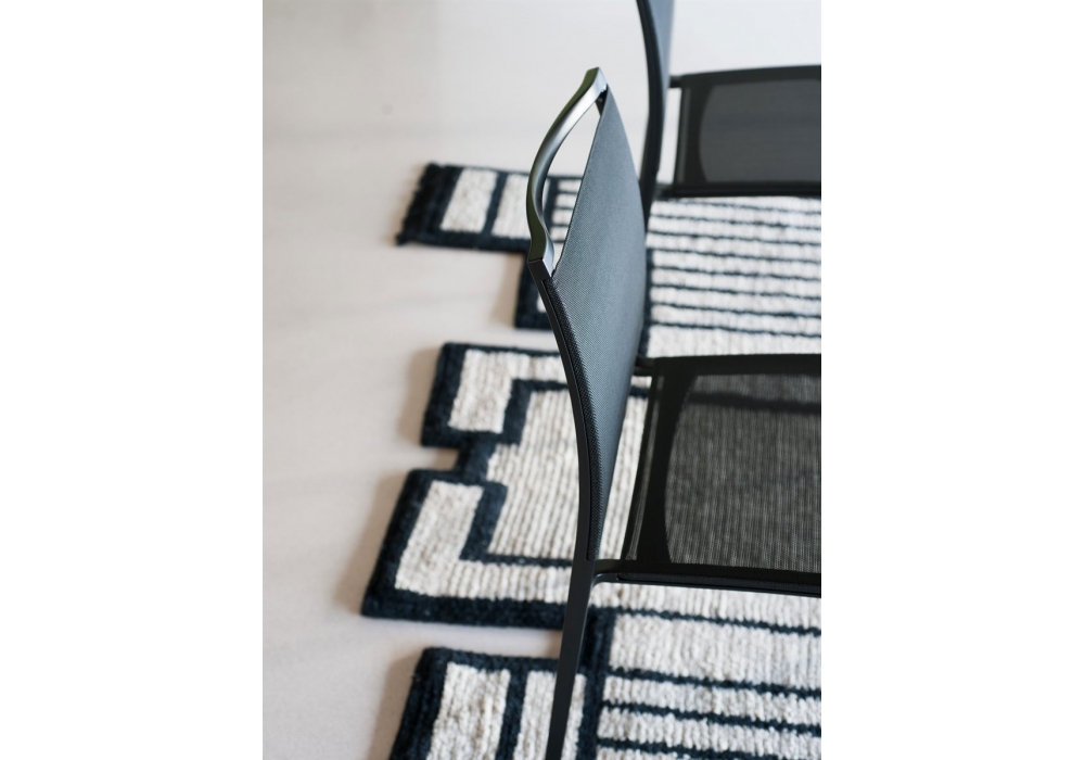 Sand Light von Pocci e Dondoli für Desalto entworfen, ist ein stapelbarer Stuhl mit Struktur aus Aluminiumdruckguss. Sitz und Rückenlehne aus Polyesternetz mit PVC-Bezug (in der Canatex-Version ist das Netz mit PVC und Hanf überzogen). Erhältlich in verschiedenen Ausführungen und in der Version mit oder ohne Armlehnen.
