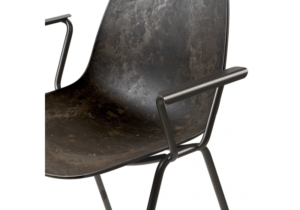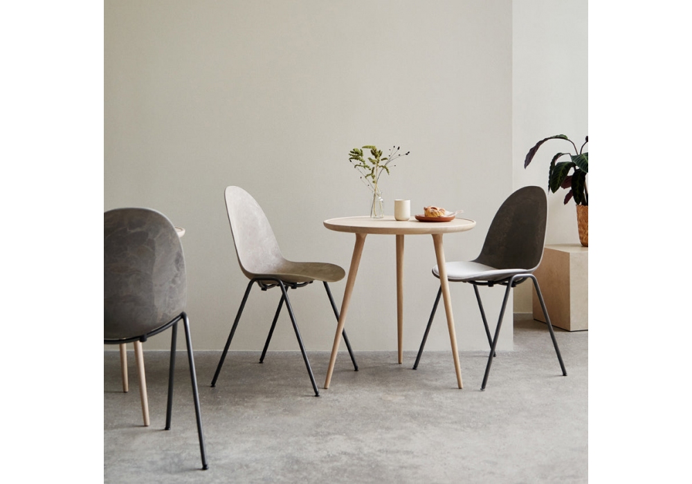 Eternity von Space Copenhagen für Mater entworfen, ist ein Stuhl mit Beinen aus Stahlrohr, Gunmetal-Finish, Sitz und Rückenlehne aus Matek®. Erhältlich in verschiedenen Ausführungen und in der Version mit oder ohne Armlehnen.