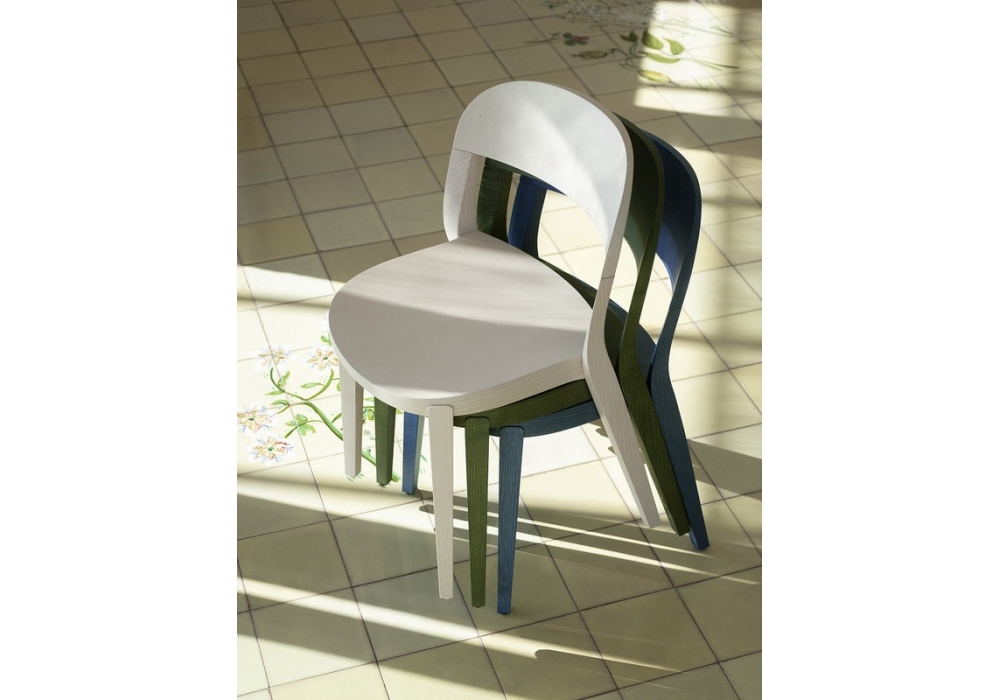 Minima von Mario Ferrarini für Potocco entworfen ist ein Stuhl der vollständig aus lackiertem Eschenholz besteht. Minima ist in verschiedenen Ausführungen und mit einer Sitzfläche komplett aus Holz oder mit Wienerstrohgeflecht erhältlich.