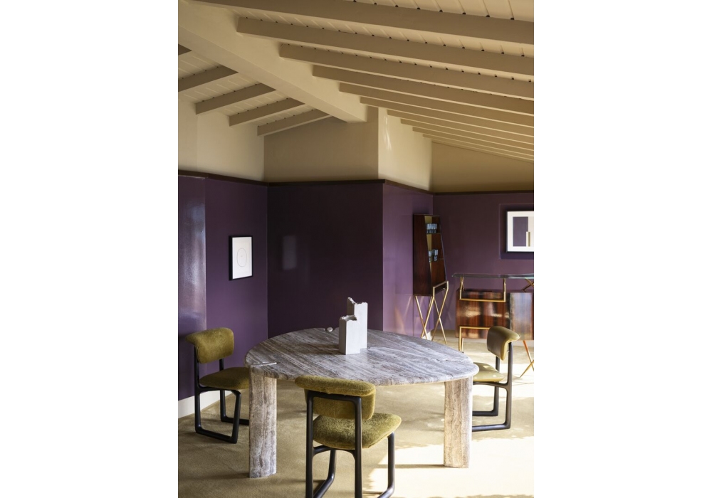 Stig von Roberto Lazzeroni für Baxter entworfen, ist ein Stuhl mit wengégebeiztem Eschenrahmen und Füllung aus Polyurethanschaum unterschiedlicher Dichte mit Acrylfaserbezügen. Details aus Metall mit Finish nach Wahl. Bezug nur in weichem Leder und Mouton.
