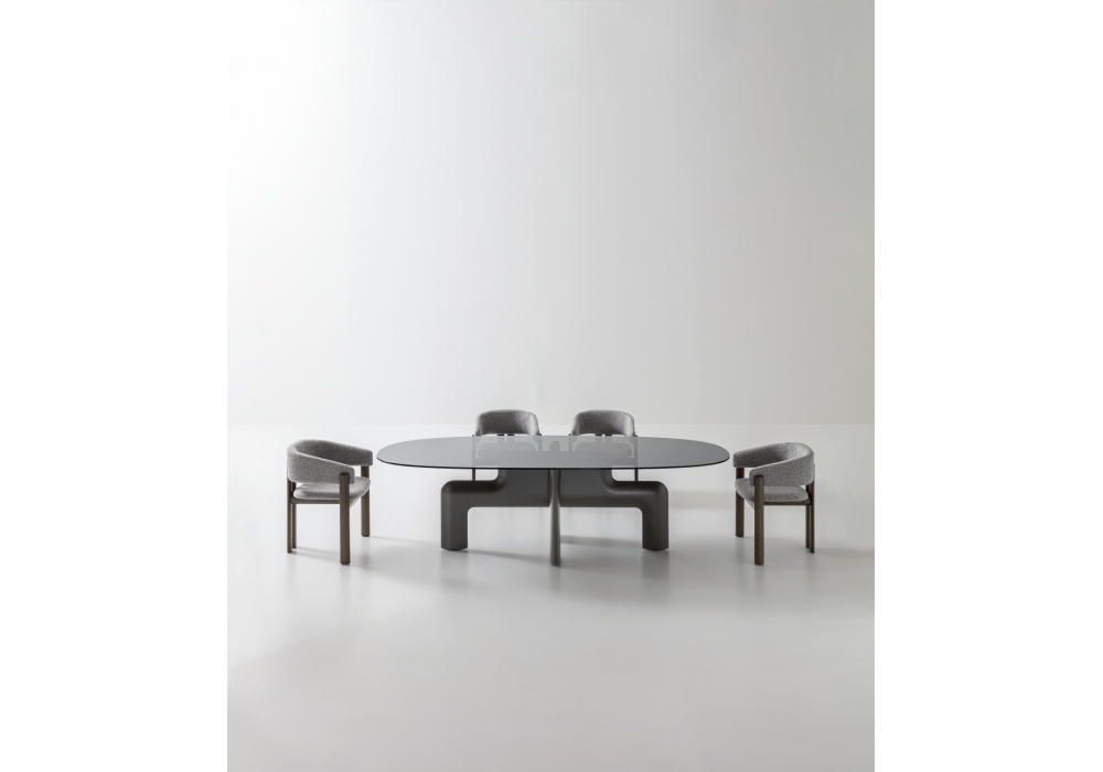 Biarritz von Dainelli Studio für Ditre Italia entworfen, ist ein Stuhl mit massiver Eschenstruktur, gepolstertem Sitz und Rückenlehne mit Stoff- oder Lederbezug.