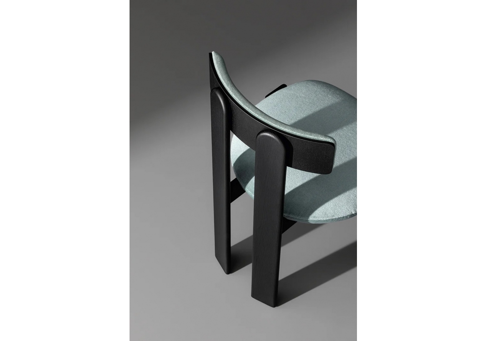 Pi von Alain Gilles für Bonaldo entworfen, ist ein Stuhl mit Holzbeinen, kaltgeschäumter Polyurethan-Polsterung, Stoff- oder Lederbezug. Erhältlich in verschiedenen Ausführungen.
