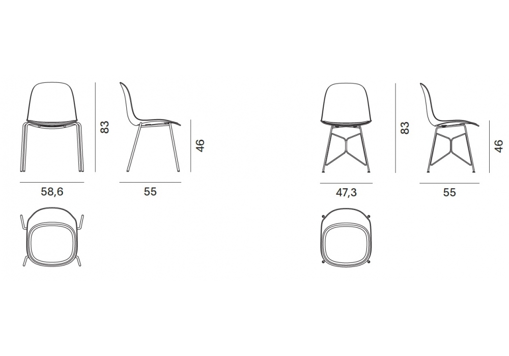 | Abmessungen | 58,6 x 55 x H 83 cm; 47,3 x 55 x H 83 cm. |