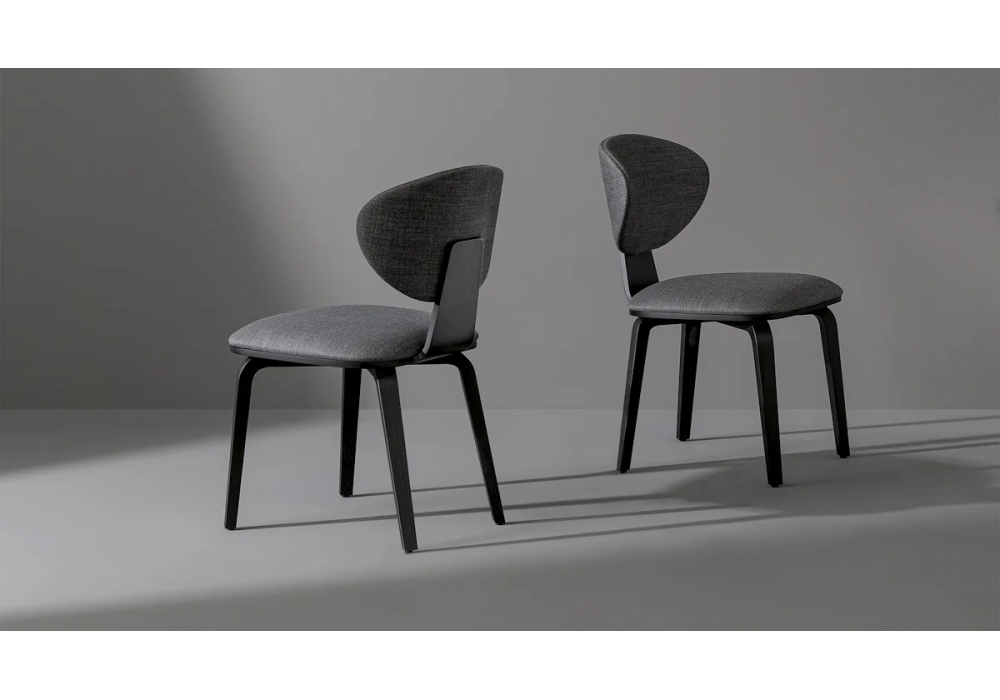 Olos von Mauro Lipparini für Bonaldo entworfen, ist ein Stuhl mit Struktur aus gebogenem Sperrholz, Beinen und Rückenlehne aus Esche oder Walnussholz. Gepolsterter Sitz und Rückenlehne mit Stoff- oder Lederbezug. Verfügbar in verschiedenen Ausführungen.