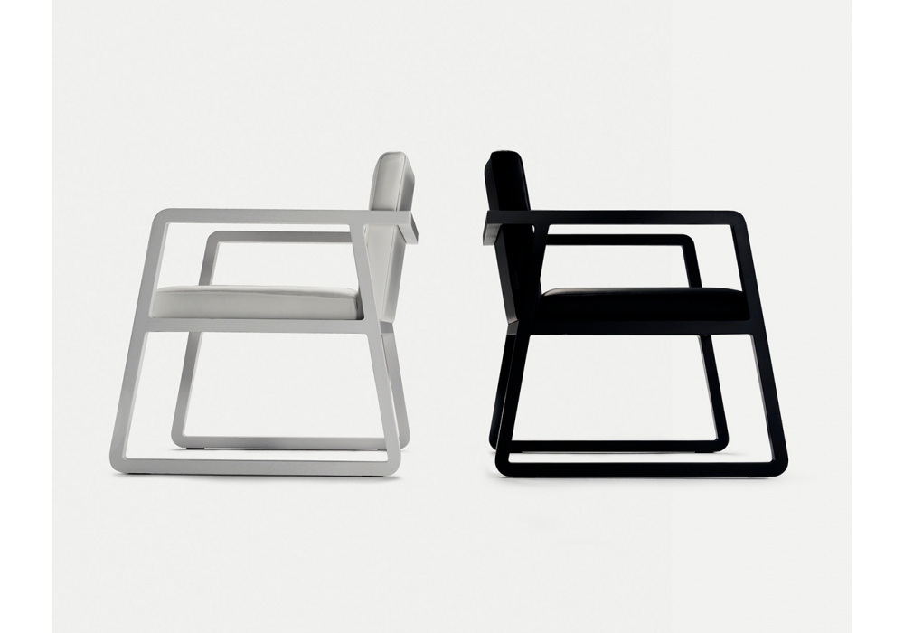 Midori von Ebualà für Sancal entworfen, ist ein Stuhl aus Holz, gepolsterter Sitz und Rückenlehne mit Stoff- oder Lederbezug. Verfügbar in verschiedenen Ausführungen und in der Version mit oder ohne Armlehnen.