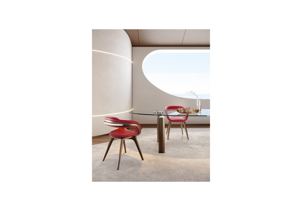 Nido von Pininfarina für Reflex Angelo entworfen, ist ein Stuhl mit Schale und Beinen in lackierter Bronze, Messing, dunklem Messing oder Titan. Innenbezug aus Leder oder Stoff. Metallgriff aus poliertem Stahl mit Pininfarina-Logo.