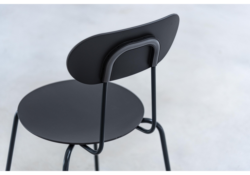 Mariolina Mono von Enzo Mari ist ein stapelbarer Stuhl mit einem weiß oder anthrazitgrau lackierten Stahlrahmen. Der Sitz-/Rückenhaken ist immer in grauer Ausführung. Sitz und Rückenlehne aus Polypropylen passend zum Rahmen.