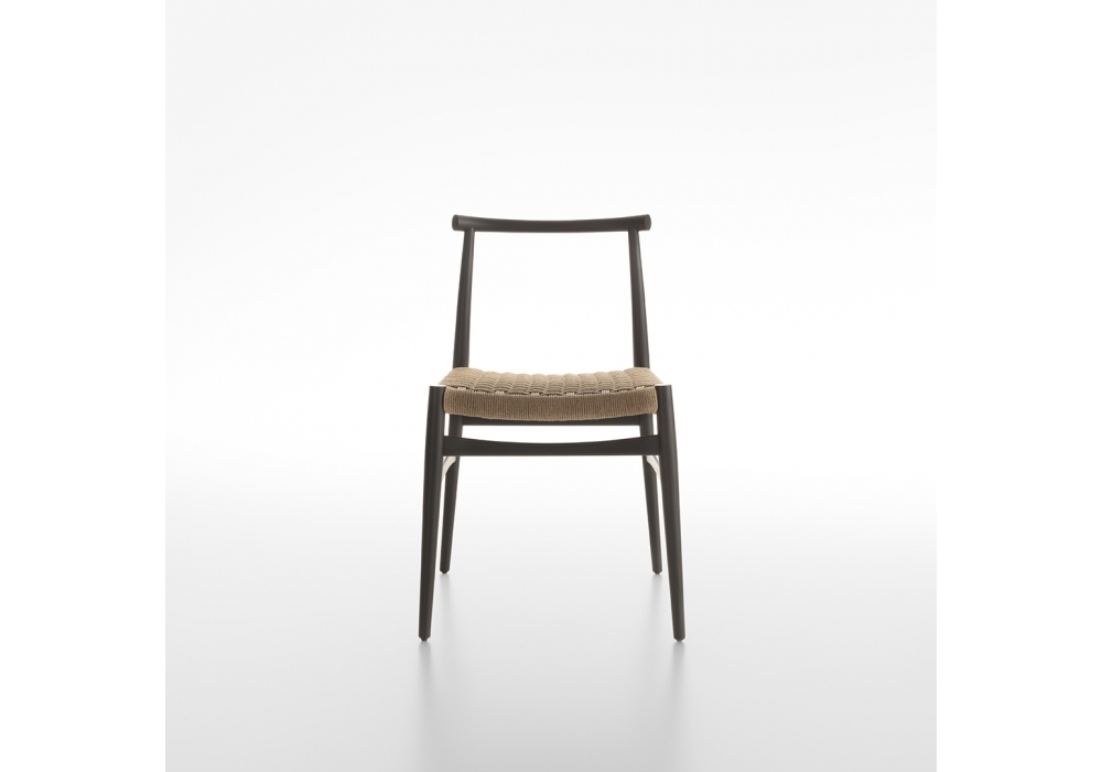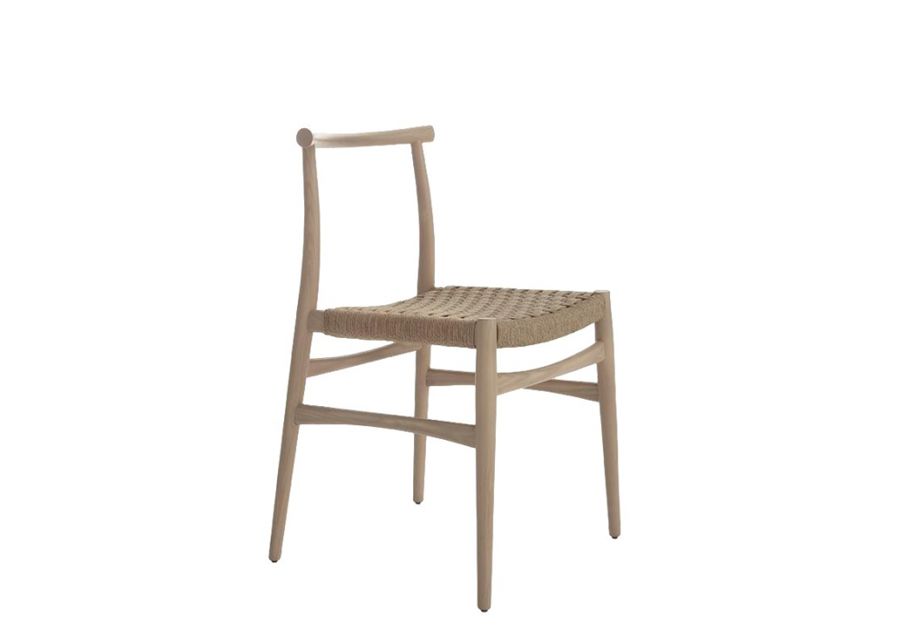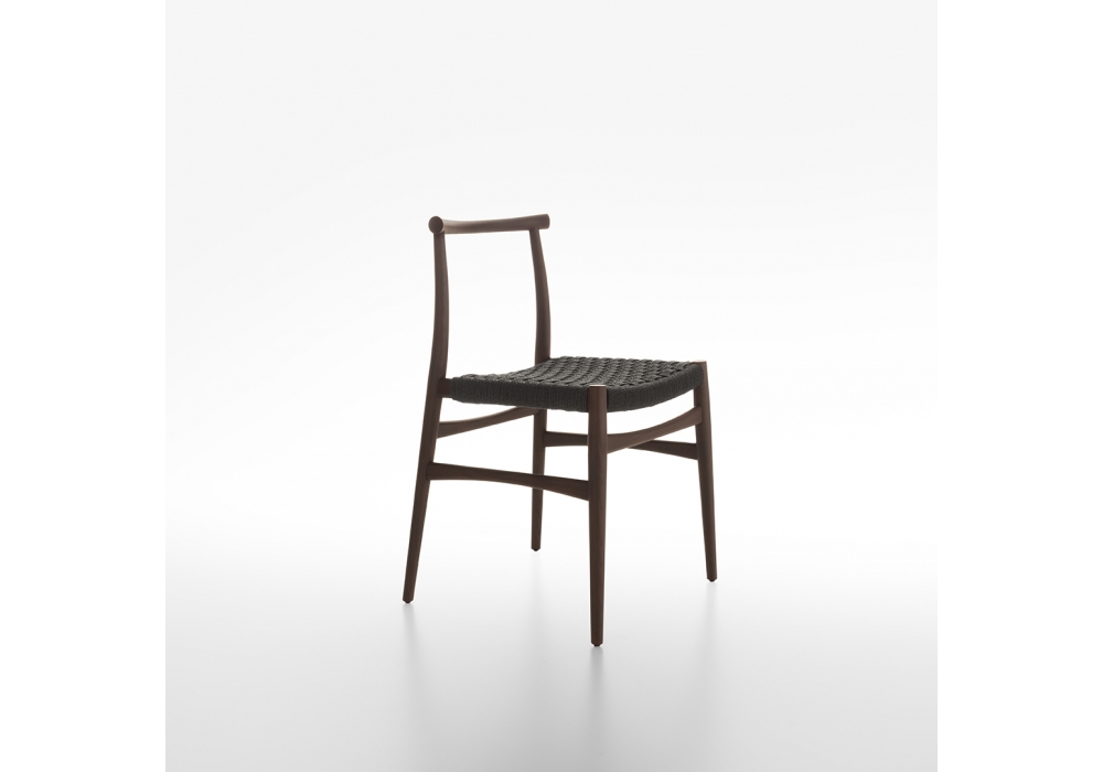 Wabi von Giuseppe Bavuso für Rimadesio entworfen, ist ein Stuhl mit Massivholzrahmen und Sitz aus Seil oder Leder. Verfügbar in verschiedenen Ausführungen.