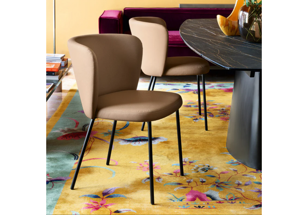 Betty von Connubia entworfen, ist ein Stuhl mit lackiertem Metallrahmen, Sitz und Rückenlehne aus Stoff oder Leder. Verfügbar in verschiedenen Ausführungen.