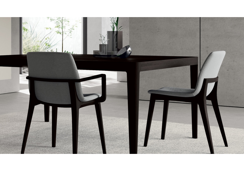 Ambra von Kico entworfen, ist ein Stuhl mit einladendem Design, der sich durch geschwungene und essentielle Linien auszeichnet. Die gepolsterte, ergonomische Sitzfläche sorgt für Komfort und Halt und macht ihn ideal für jeden Raum im Haus. Erhältlich mit oder ohne Armlehnen, zeichnet er sich durch seine verlängerten Hinterbeine aus, die zu Armlehnen werden und so eine harmonische, durchgehende Silhouette mit angenehmer Haptik schaffen.