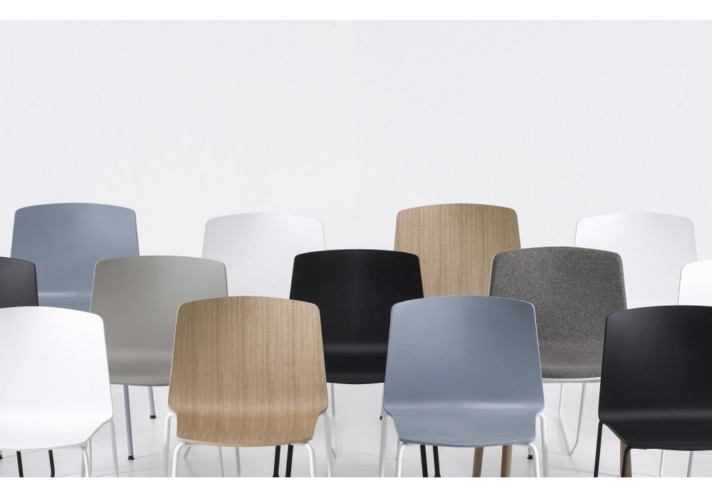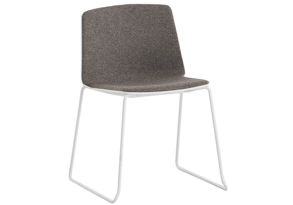 Rama von Ramos-Bassols für Kristalia entworfen, ist ein Stuhl mit Kufengestell aus Stahl verfügbar in verschiedenen Ausführungen, Schale aus Polypropylen oder Holz mit Vorderpolsterung aus Stoff oder Leder.