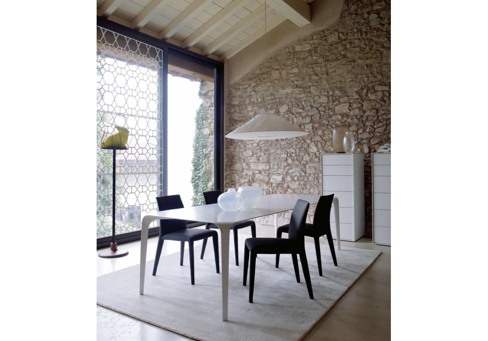 Vol Au Vent von Mario Bellini für B&B Italia entworfen, ist ein Stuhl mit Innenrahmen aus Stahlrohr und Stahlprofilen und Innenpolsterung aus flexiblem Kaltpolyurethanschaum Bayfit®, Innenfutter aus Polyesterfaser. Bezug aus verschiedenen Stoffen oder Ledern.