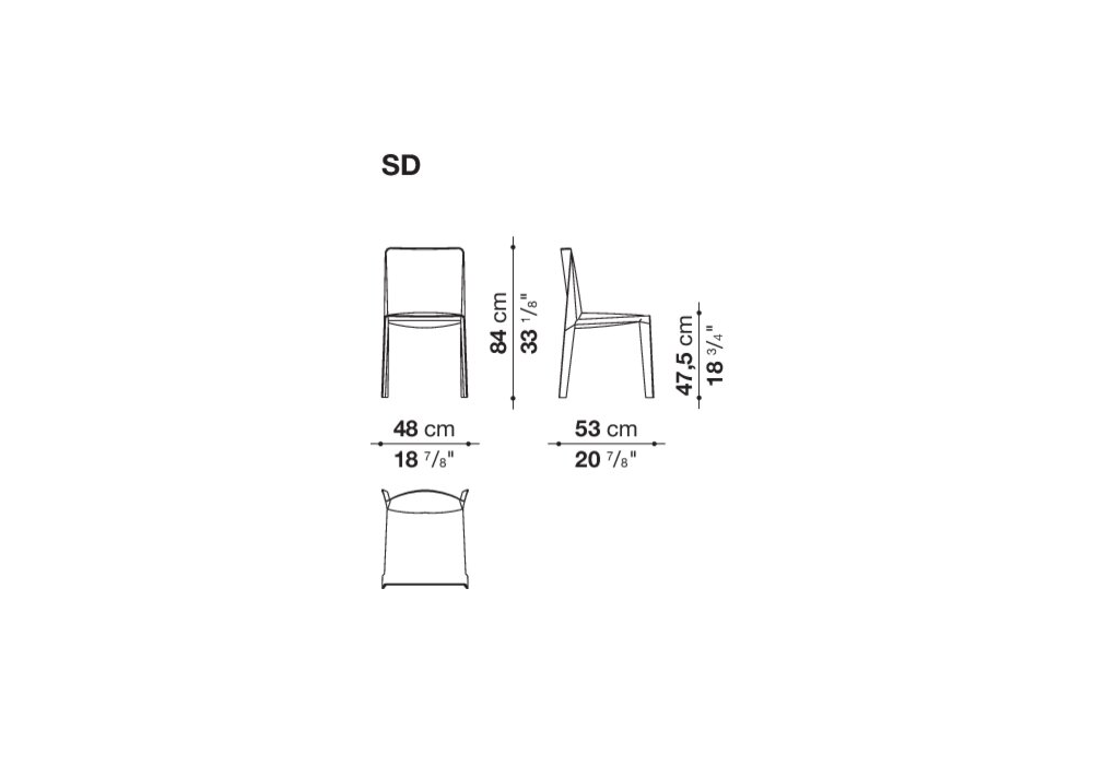 Doyl von Gabriele und Oscar Buratti für B&B Italia entworfen, ist ein Stuhl mit einem Innenrahmen aus Stahlrohr und Stahlprofilen und einer Polsterung aus flexiblem Kaltpolyurethanschaum Bayfit®. Lederpolsterung in verschiedenen Ausführungen. Spitzen aus thermoplastischem Material.