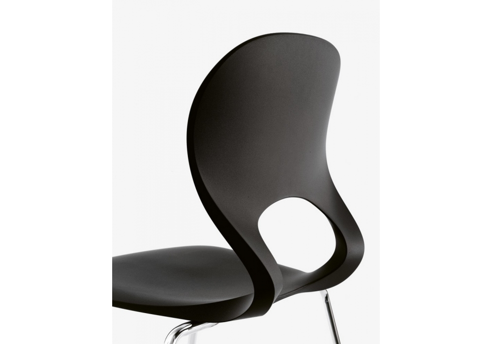 Pikaia, von Angelo Natuzzi für Kristalia entworfen, ist ein Stuhl mit Schale aus Polyurethan, verfügbar in mehreren Farben und vier Beinen aus Stahl, vorgeschlagen in verchromter oder lackierter Ausführung in der gleichen Farbe der Schale.