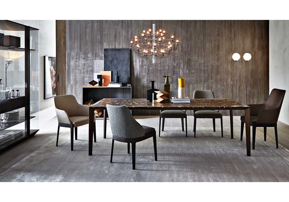 Chelsea von Rodolfo Dordoni für Molteni&C entworfen, ist ein Stuhl mit gebeizter Massivholzstruktur und Stoff- oder Lederbezug. Verfügbar in mehreren Ausführungen.