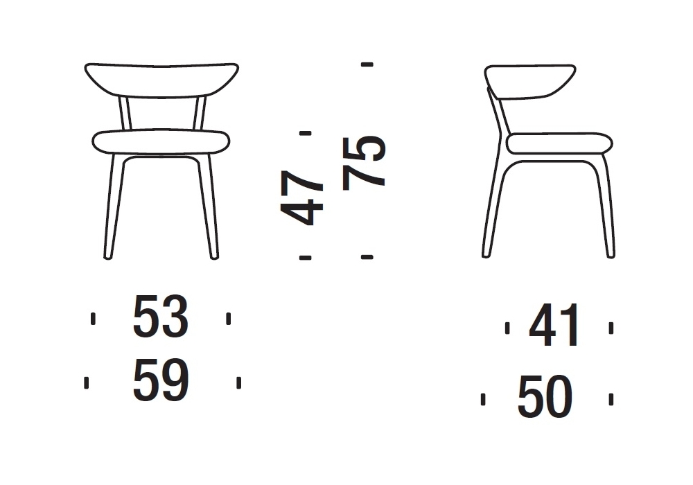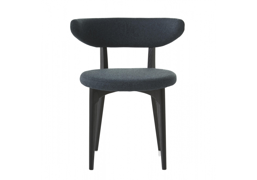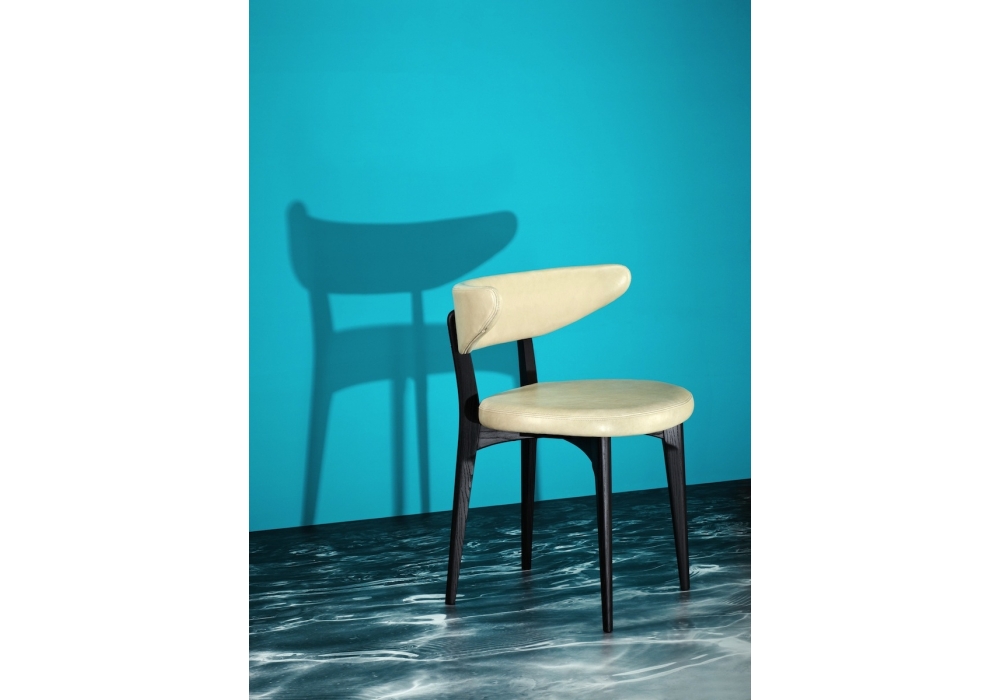 Varnished ash. Seat and back in birch covered by flame-retardant stress-resistant polyurethane foam with differentiated densities.