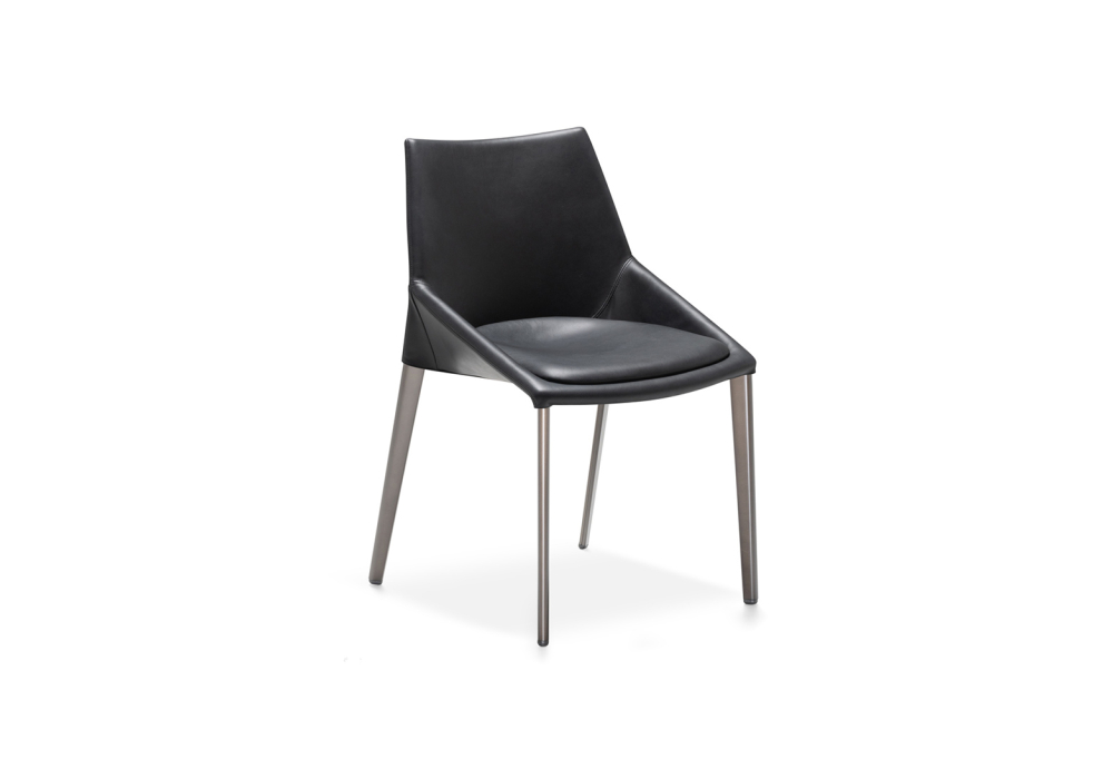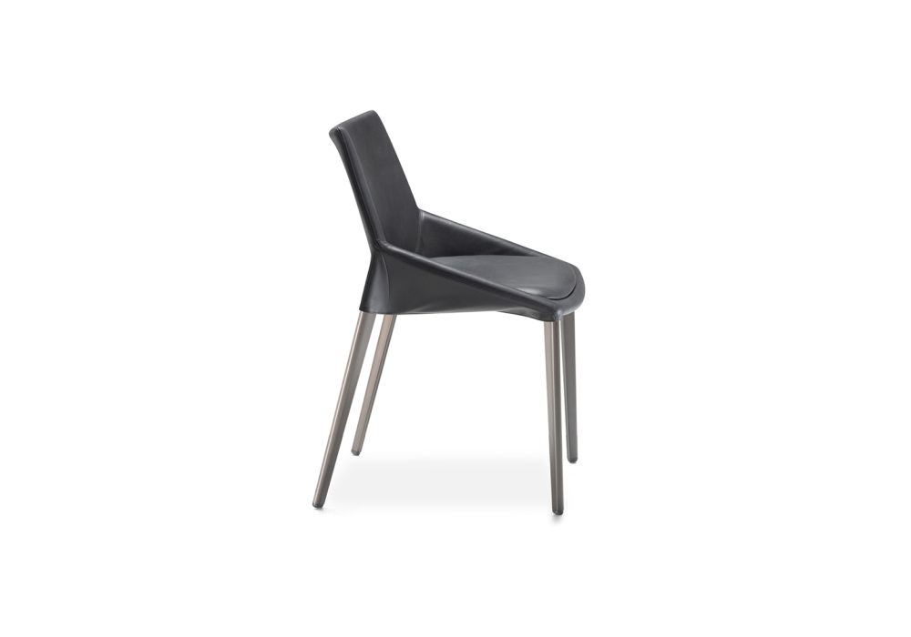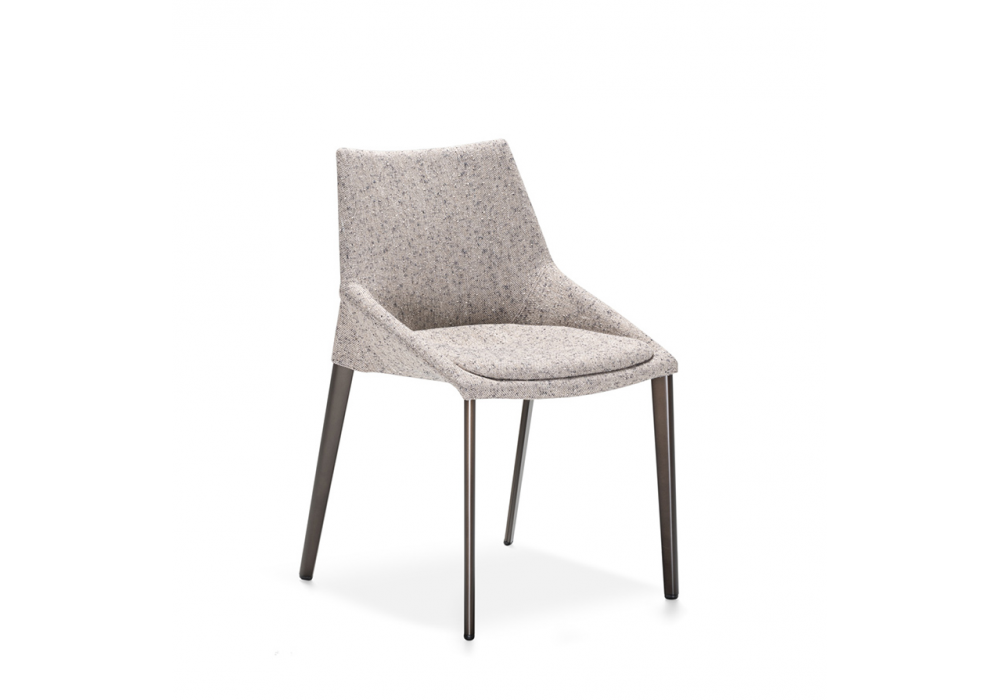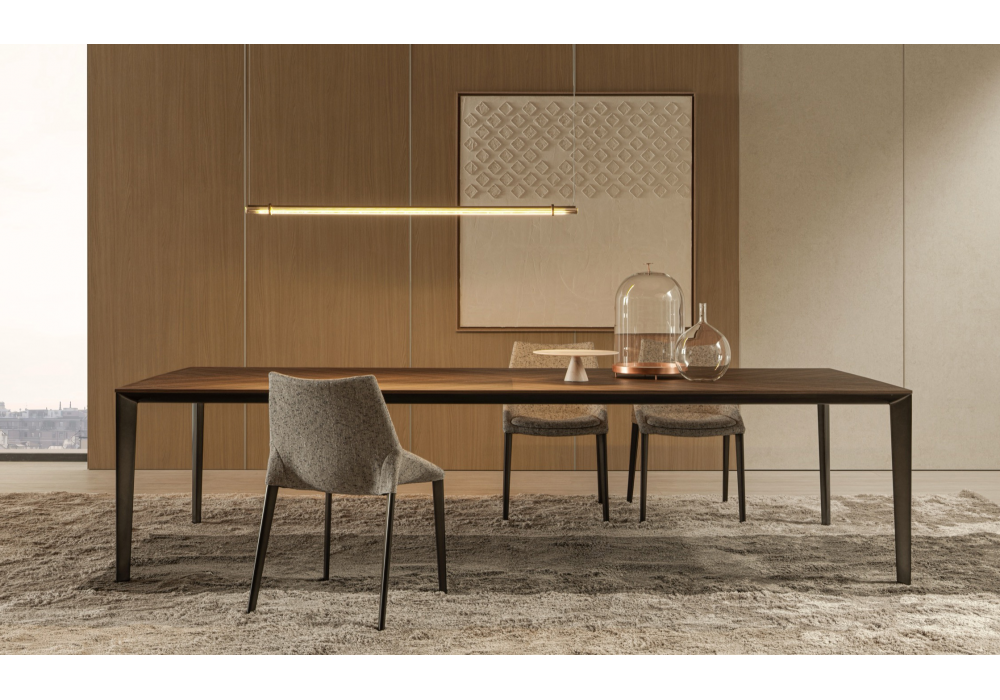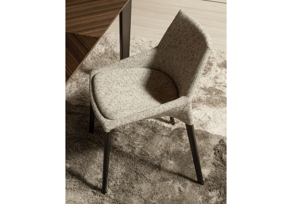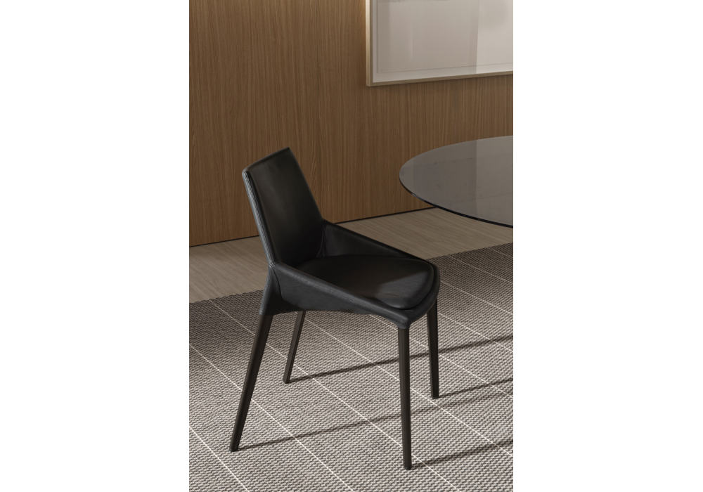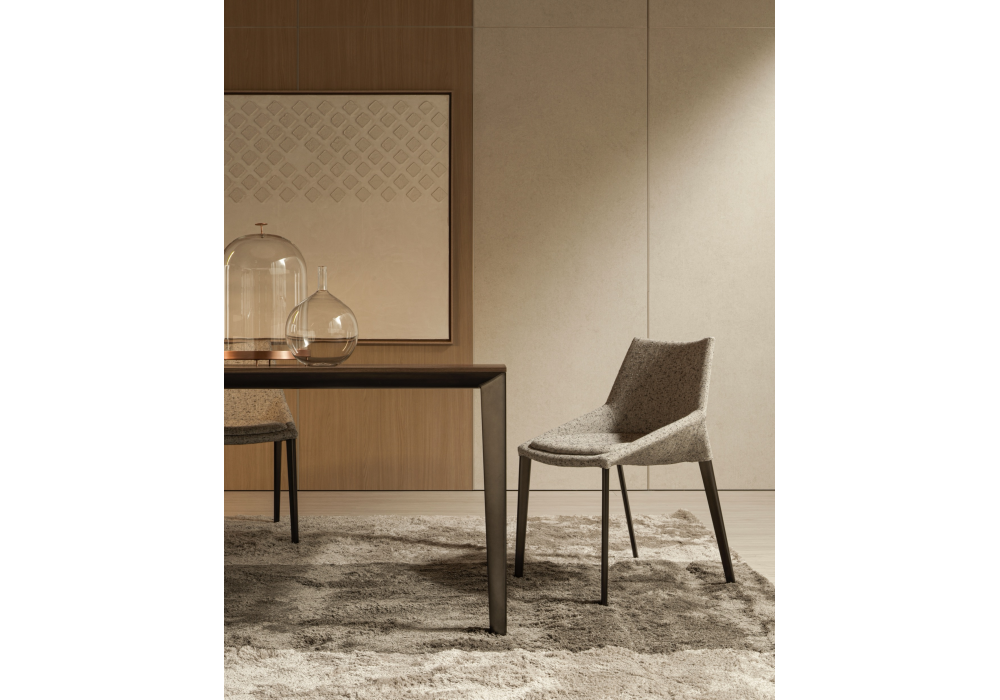 Outline von Arik Levy für Molteni&C entworfen, ist ein Stuhl mit Holz- oder Metallbeinen und Stoff- oder Lederpolsterung. Füße aus rutschfestem Kunststoff.