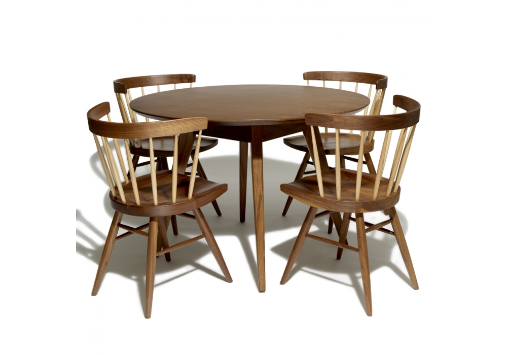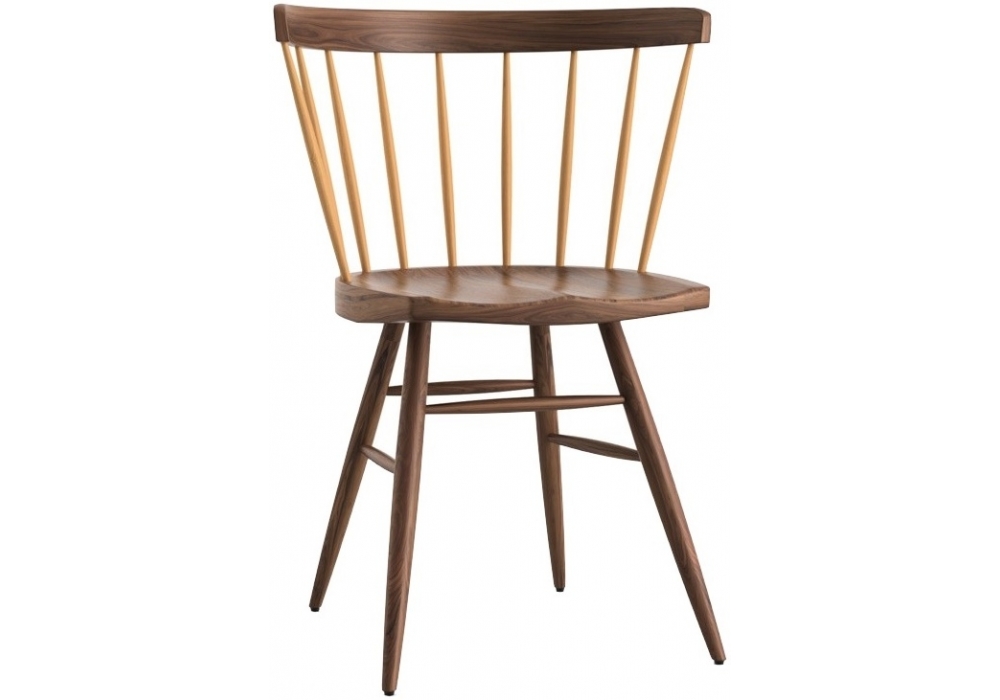 Straight, von George Nakashima für Knoll entworfen, ist ein Stuhl aus massivem amerikanischem Nussbaumholz. Die Rückenlehnenpfosten sind aus Hickoryholz und bilden einen schönen Kontrast zu allen anderen Teilen aus amerikanischem Nussbaumholz in transparentem Finish.