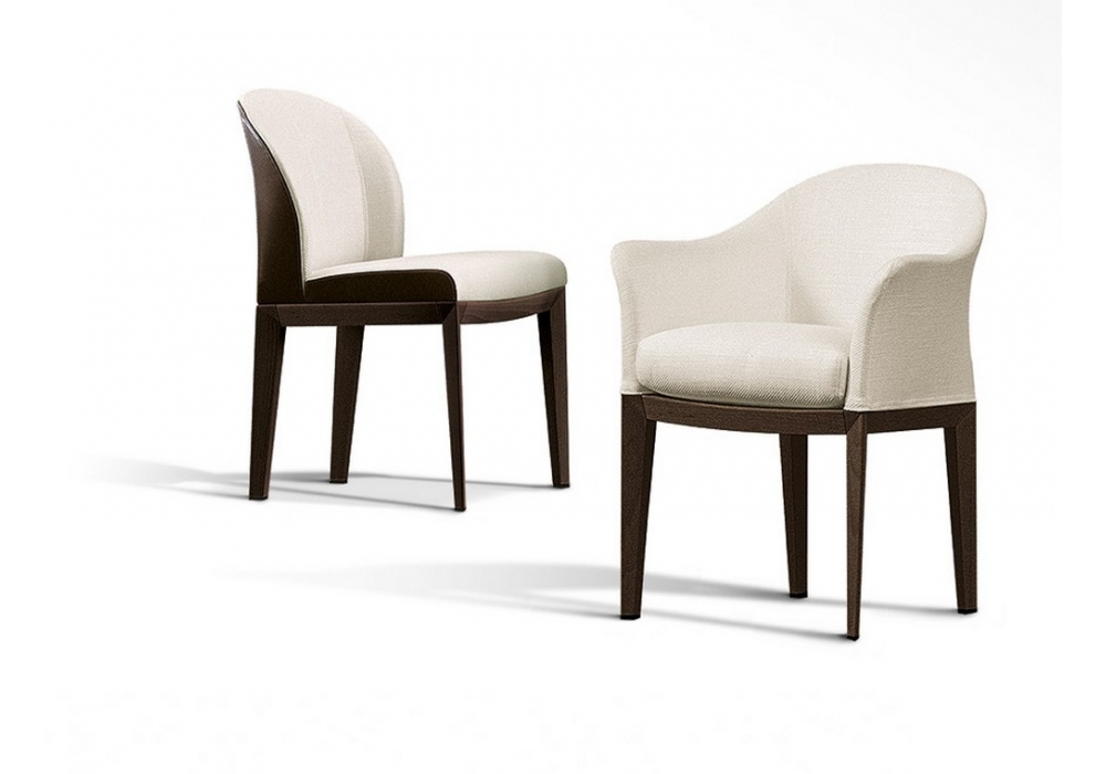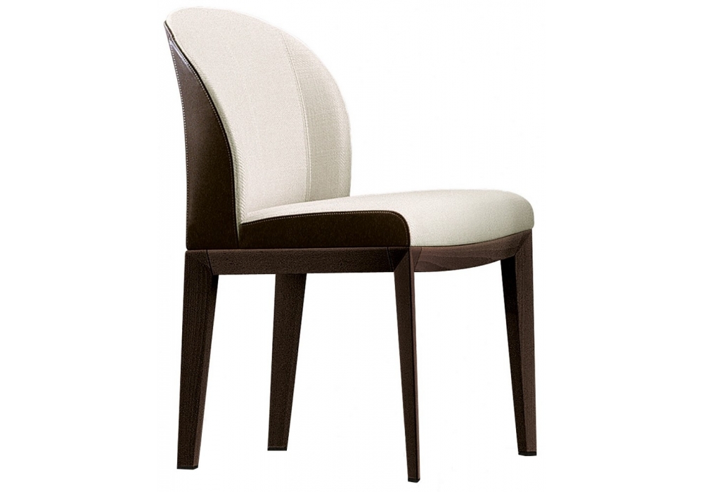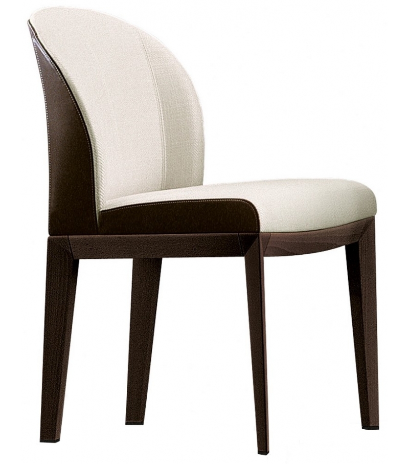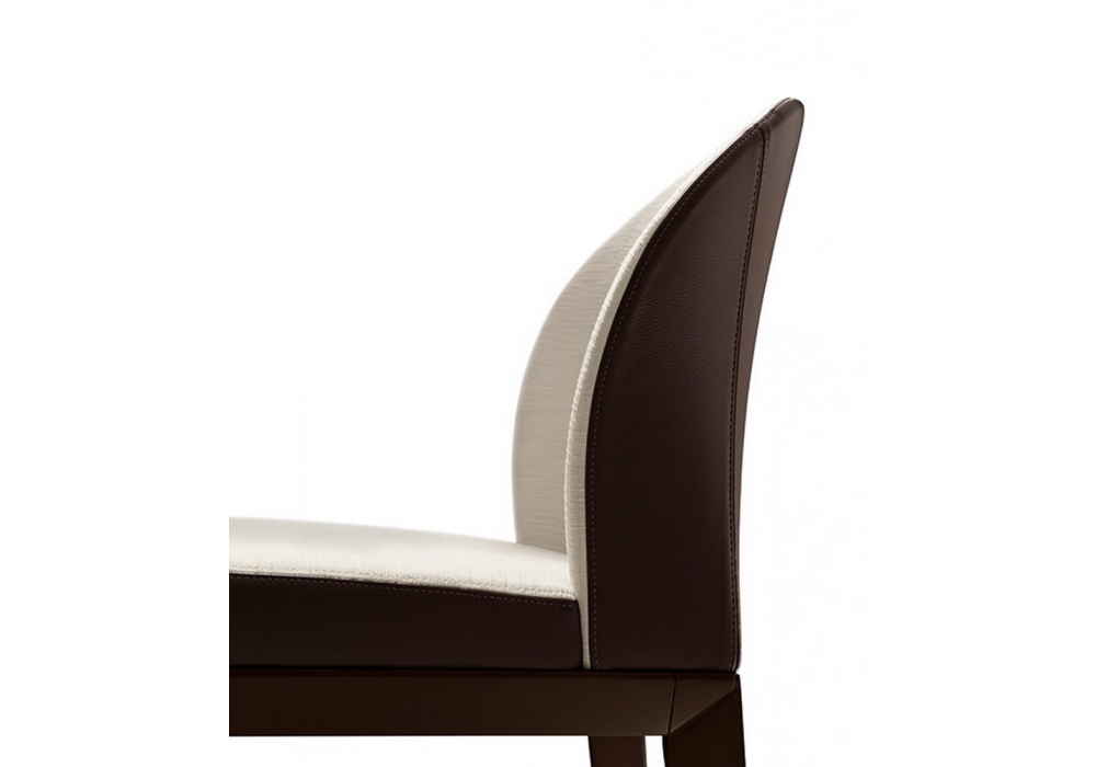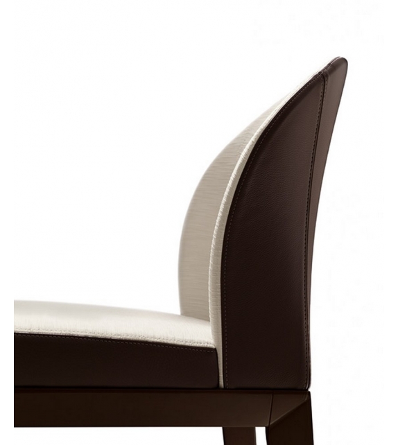 Normal von Massimo Scolari für Giorgetti entworfen, ist ein zweifarbiger Stuhl mit Struktur aus polierter massiver Buche, in verschiedenen Ausführungen und mit Rückenlehne aus kompaktem Hartpolyurethan und kaltgeschäumtem flexiblem Polyurethanschaum. Der Sitz mit einer Unterseite aus Methacrylat hat ein Kissen aus unverformbarem Polyurethanschaum, der mit Fasern überzogen ist. Die Polsterung ist zweifarbig erhältlich, mit dem äußeren Teil in Leder und dem inneren in Stoff oder Leder. Der Stuhl hat schwarze PVC-Spitzen.