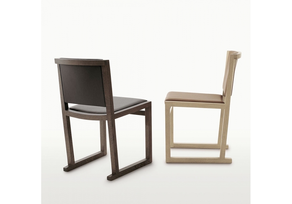 Musa von Antonio Citterio für Maxalto entworfen ist ein Stuhl mit einer Struktur aus massiver Eiche und Polsterung aus verschiedenen Stoffen oder Ledern.