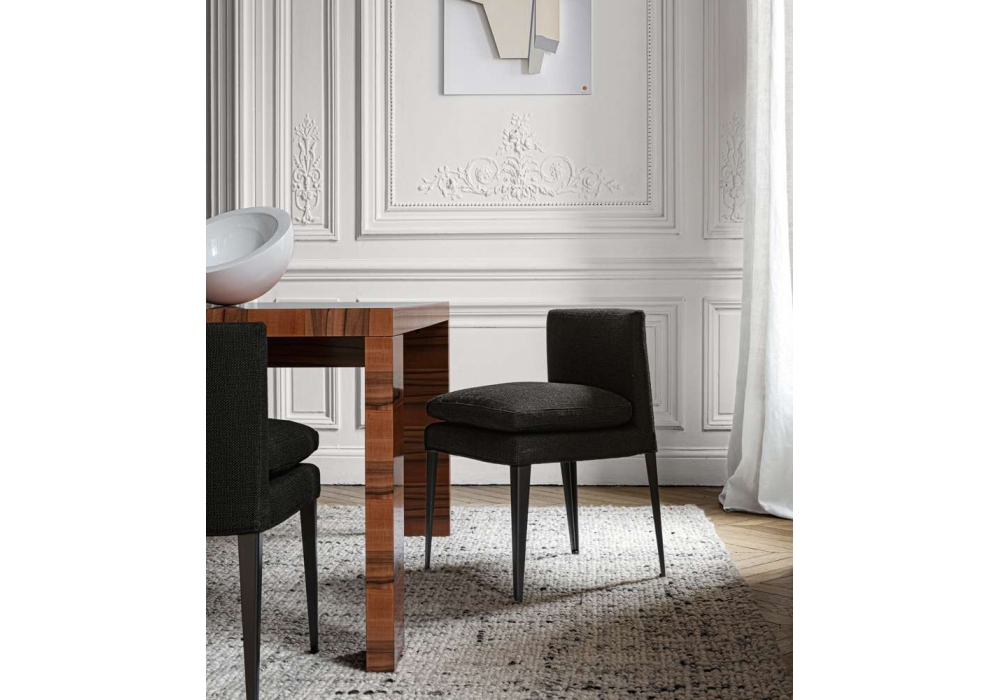 Eunice von Antonio Citterio für Maxalto entworfen ist ein Stuhl mit Beinen aus Stahlblech oder Massivholz und Polsterung aus verschiedenen Stoffen oder Ledern.