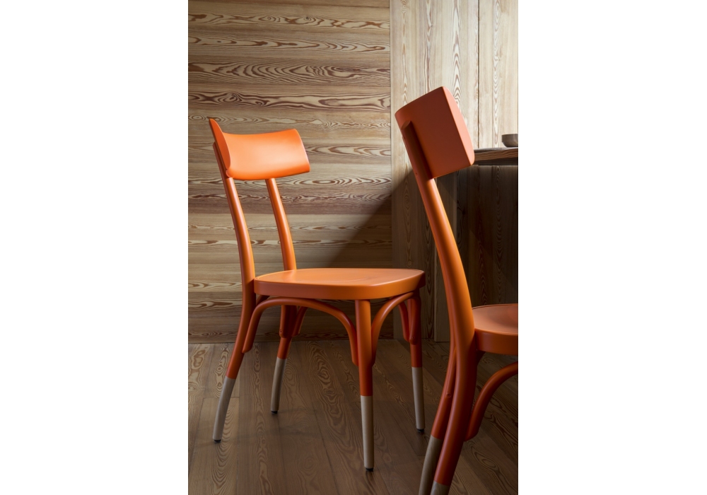 Czech von Hermann Czech für Gebrüder Thonet Vienna entworfen, ist ein Stuhl aus gebogener Buche verfügbar in verschiedenen Ausführungen, mit oder ohne Armlehnen. Die lackierte Version ist auch mit oder ohne Kniestrümpfe aus Buche natur erhältlich.