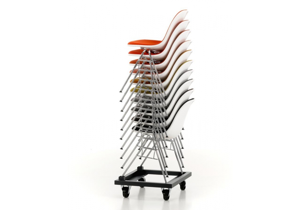Eames Plastic Side Chair DSS: Stahlrohruntergestell verchromt, DSS mit Reihenkupplungselement. (DSS = Dining Height Side Chair Stacking Base).