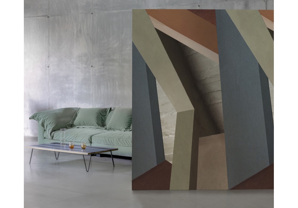 Architectural Color Block von Diesel Living für Wall & Decò entworfen, ist eine digital bedruckte Vliestapete. Beschichteter Vliesstoff auf Basis von Cellulosefasern und Polyesterfasern, wasserbasierten Tinten und organischen Pigmenten. Erhältlich in verschiedenen Ausführungen.