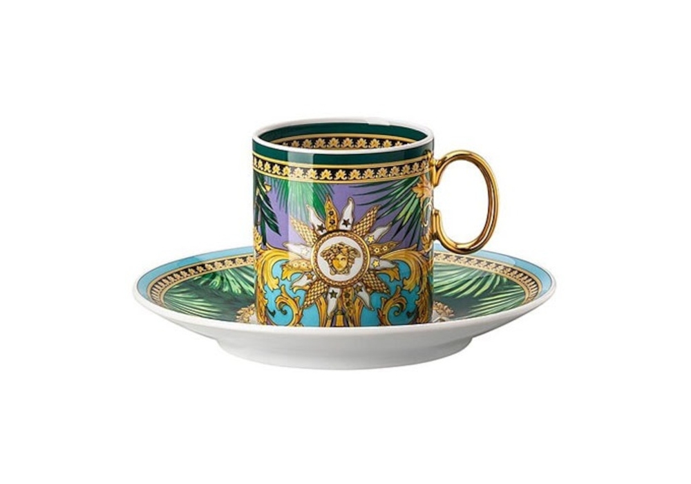 Jungle Animalier von Versace für Rosenthal Versace entworfen, ist eine Kaffeetasse aus Porzellan mit Untertasse.
