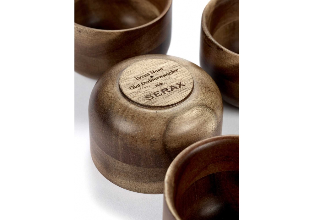 Collage von Utilise.objects für Serax entworfen, ist eine runde Tasse aus Akazienholz in einem natürlichen Holzfinish.