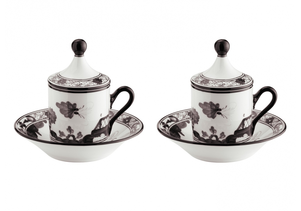 Tazza Caffè con Piatto e Coperchio Oriente Italiano Albus Ginori 1735 Kaffeebecher