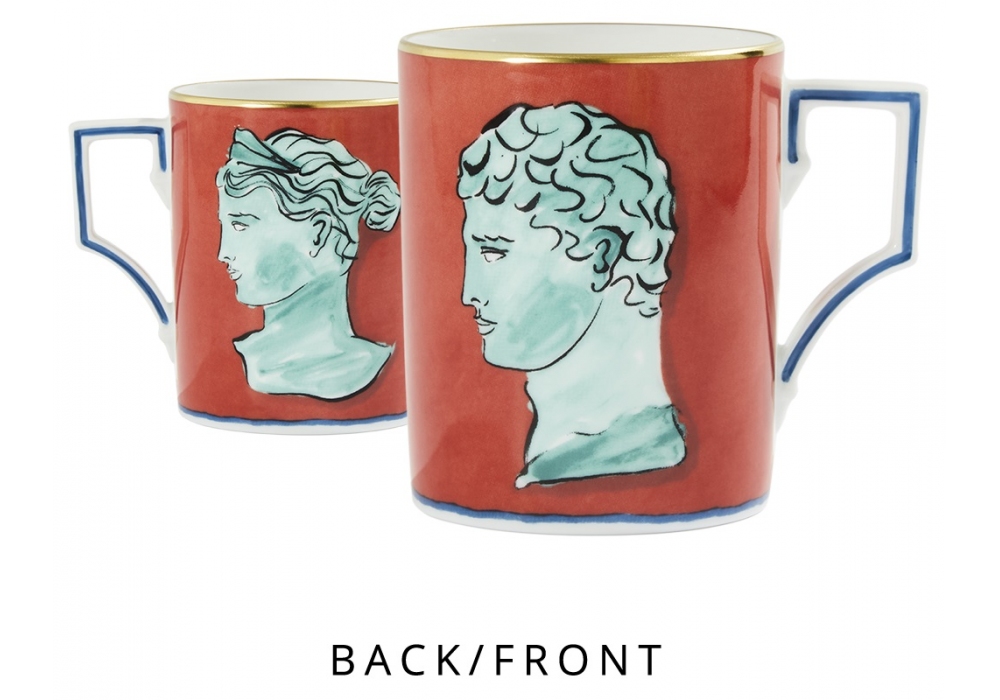Tazza Il Viaggio di Nettuno Coral Red von Luke Edward Hall für Ginori 1735 entworfen, ist ein dekorierter Becher.