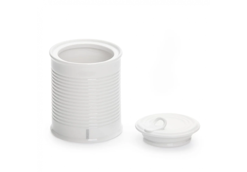 Zucchero, entworfen von Selab & Alessandro Zambelli für Seletti, ist ein rundes Glas mit Deckel aus weißem Porzellan.