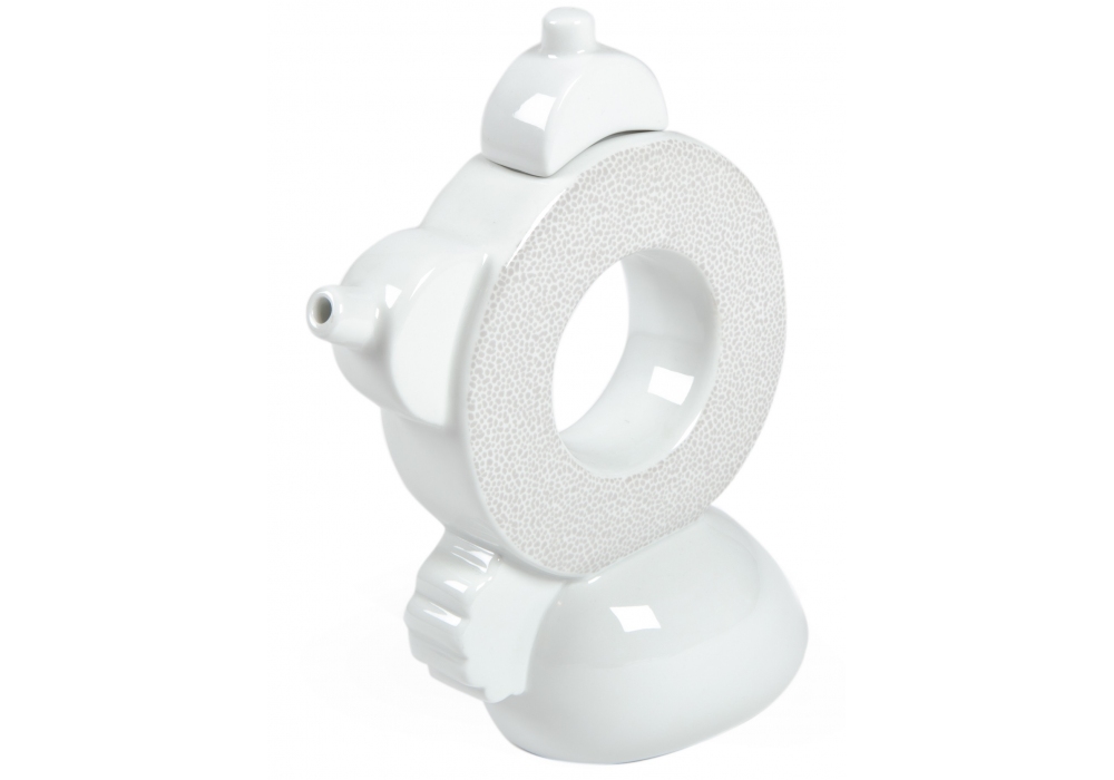 Chad von Matteo Thun für Memphis Milano entworfen, ist eine Teekanne aus weißem Porzellan mit Verzierungen.