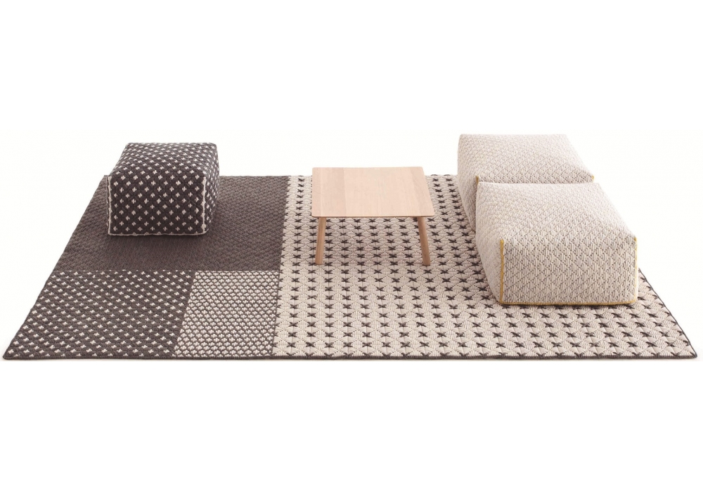 Silaï, von Charlotte Lancelot für Gan entworfen, ist ein Teppich aus 100% neuer Wolle mit PVC-Netzbasis. Verfügbar in mehreren festgelegten Farbsequenzen.