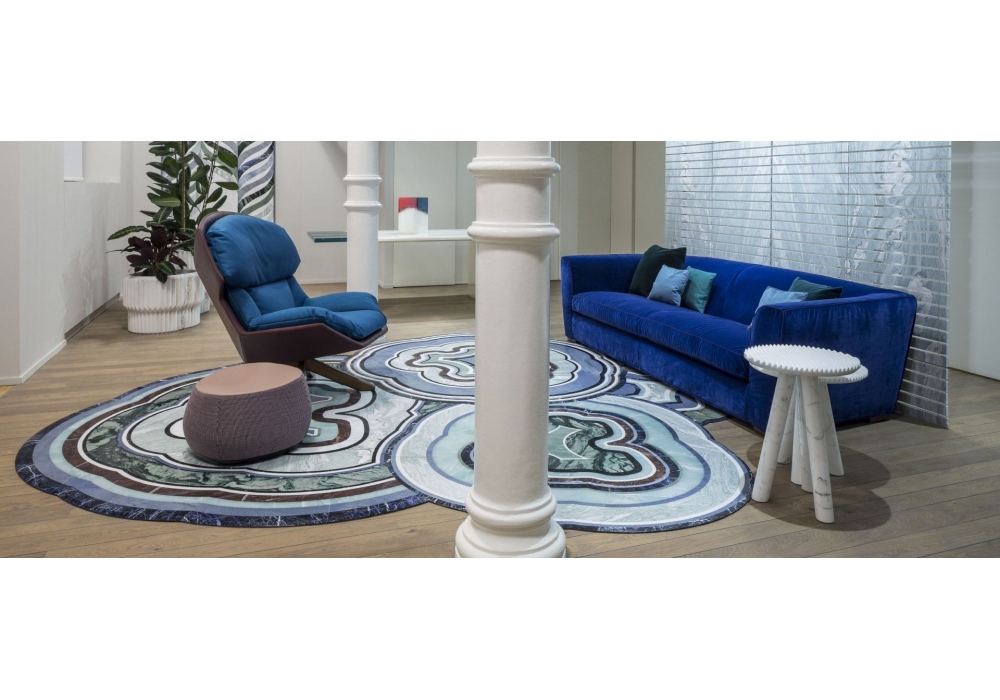 Agata von Patricia Urquiola für Budri entworfen, ist ein Teppich aus edlem Marmor und Onyx, in marinen Blau- und Grüntönen.