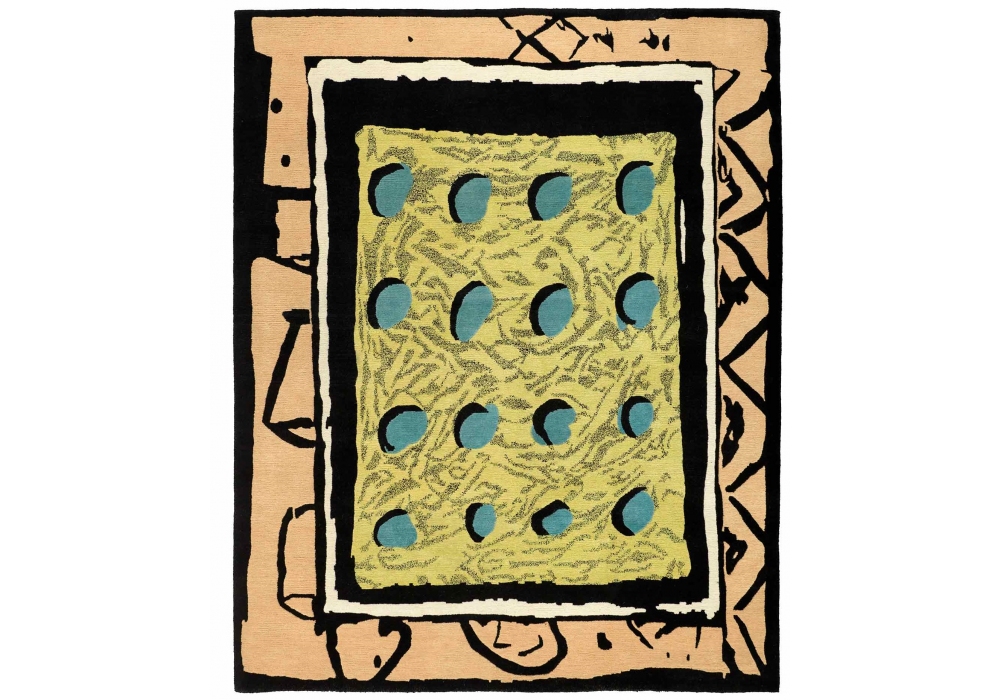 Dakota von Roger Selden für Memphis Milano entworfen, ist ein teppich, der von verschiedenen Kunsthandwerkern handgefertigt wurde. Limitierte Auflage von 36 Stück.