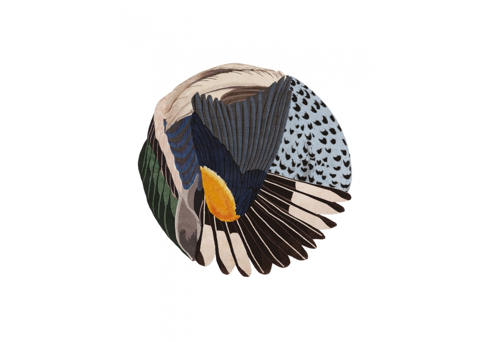 Feathers Round von Maarten De Ceulaer für CC-Tapis entworfen, ist ein handgeknüpfter Teppich aus Baumwollgewebe, Himalaya-Wolle und reiner Seide.
