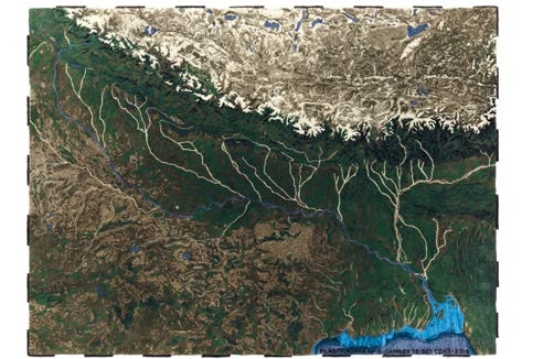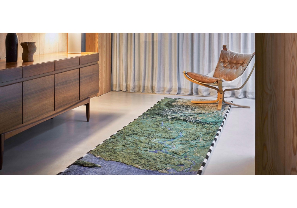 Plastic River, signiert von Álvaro Catalán de Ocón für Gan, ist ein Teppich mit dem Ziel, durch Handwerk zu sensibilisieren und zu kämpfen, eines der großen globalen Probleme, Plastikmüll. Jeder Teppich ist eine treue und skalische Darstellung der verschmutzten und verschmutzten Flüsse des Planeten: Gange, Yangtze, Indo und Niger. Die Teppiche sind von Hand mit recycelten Plastikfasern (100%recyceltes Haustier).