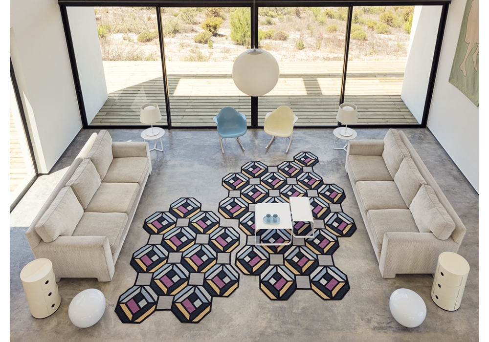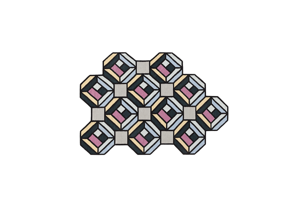Parquet Tetragon von Front für GAN entworfen, ist ein Teppich aus 100% Wolle in Kelim-Technik. Erhältlich in verschiedenen Größen.