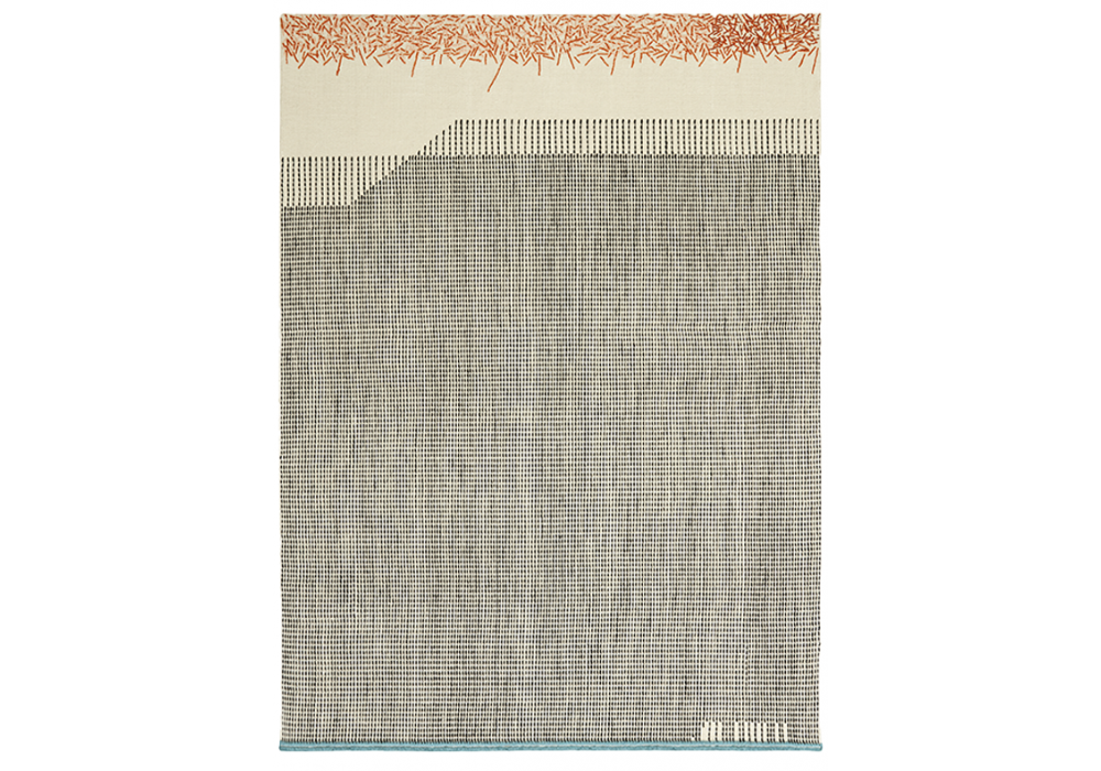 Backstitch Calm von Raw-Edges für Gan entworfen, ist ein Teppich aus 100 % Wolle, der mit Kelim + Sticktechnik hergestellt wurde. Verfügbar in verschiedenen Ausführungen und Abmessungen.