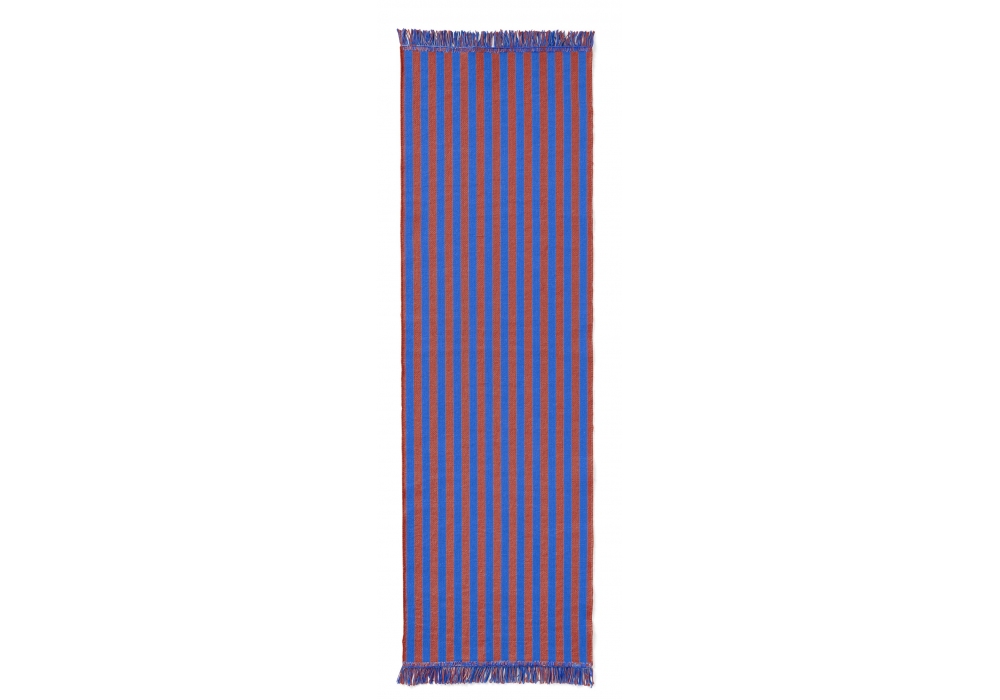 Stripes and Stripes entworfen und hergestellt von Hay, ist ein Teppich aus Baumwolle mit Fransenenden, die aus vertikalen Streifen in Kontrastfarben bestehen. Verfügbar in verschiedenen Ausführungen.