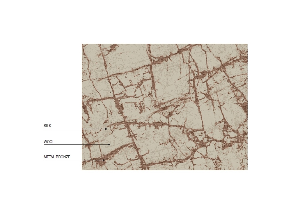 Wound von AL1 für Longhi entworfen, ist ein auf Holzwebstühlen handgefertigter Teppich aus 50 % Seide und 50 % Wolle. Basis aus Wolle, Reliefmuster aus Seide mit besonderem Einsatz aus bronziertem Metall. Verfügbar als rundes oder rechteckiges Modell.