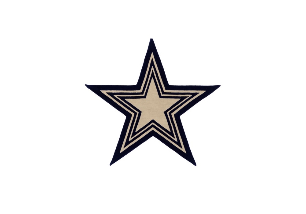 Stellina von D’Urbino e Lomazzi für Poltronova entworfen, ist ein Teppich aus handgetufteter Wolle in Grau- und Marineblautönen, der eine Hommage an die historische Uniform der New York Yankees darstellt, genau wie der Sessel, für den der Star geboren wurde, selbst ein Hommage an einen Mythos der amerikanischen Populärkultur, den Schlüsselspieler des New Yorker Teams, Joe DiMaggio.