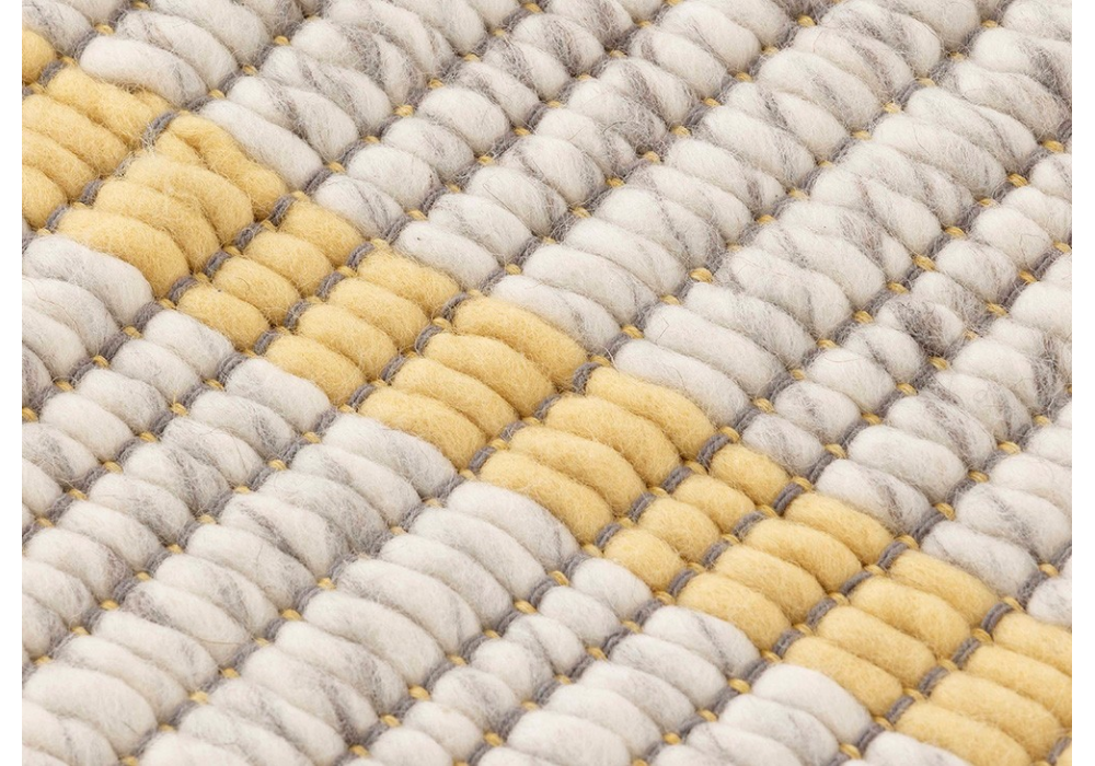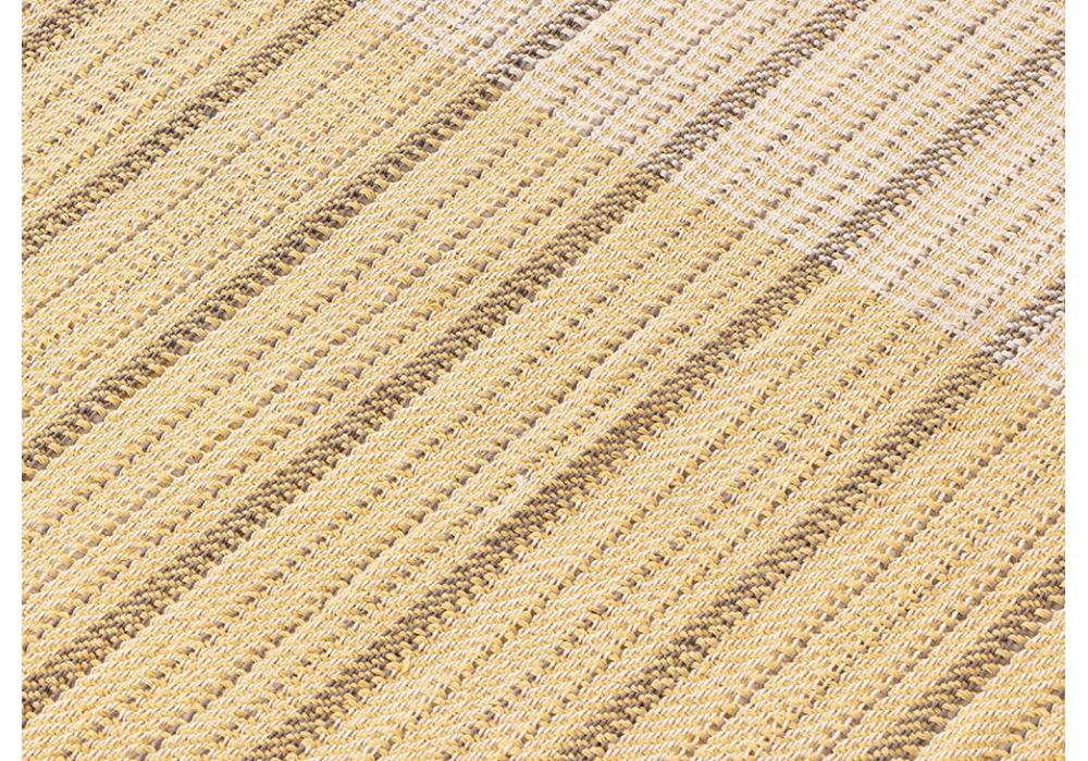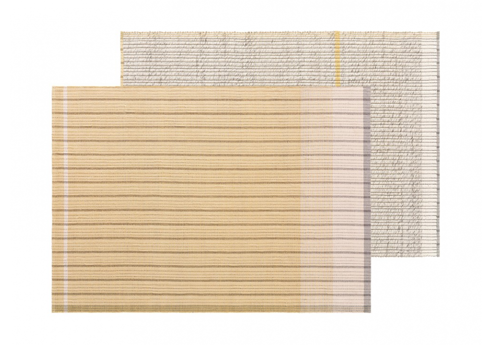 Reversible Yellow von Charlotte Lancelot für Gan entworfen, ist ein Teppich, der aus Garnen unterschiedlicher Stärke und Materialien gefertigt ist, mit einer Seite aus 100 % reiner Schurwolle und der anderen aus Leinen.
