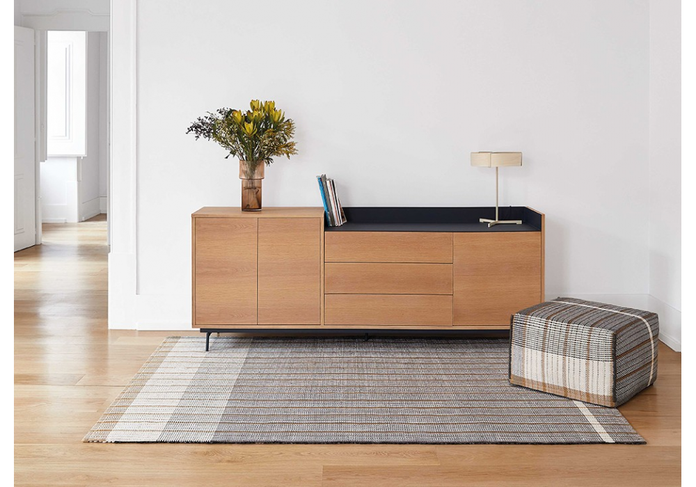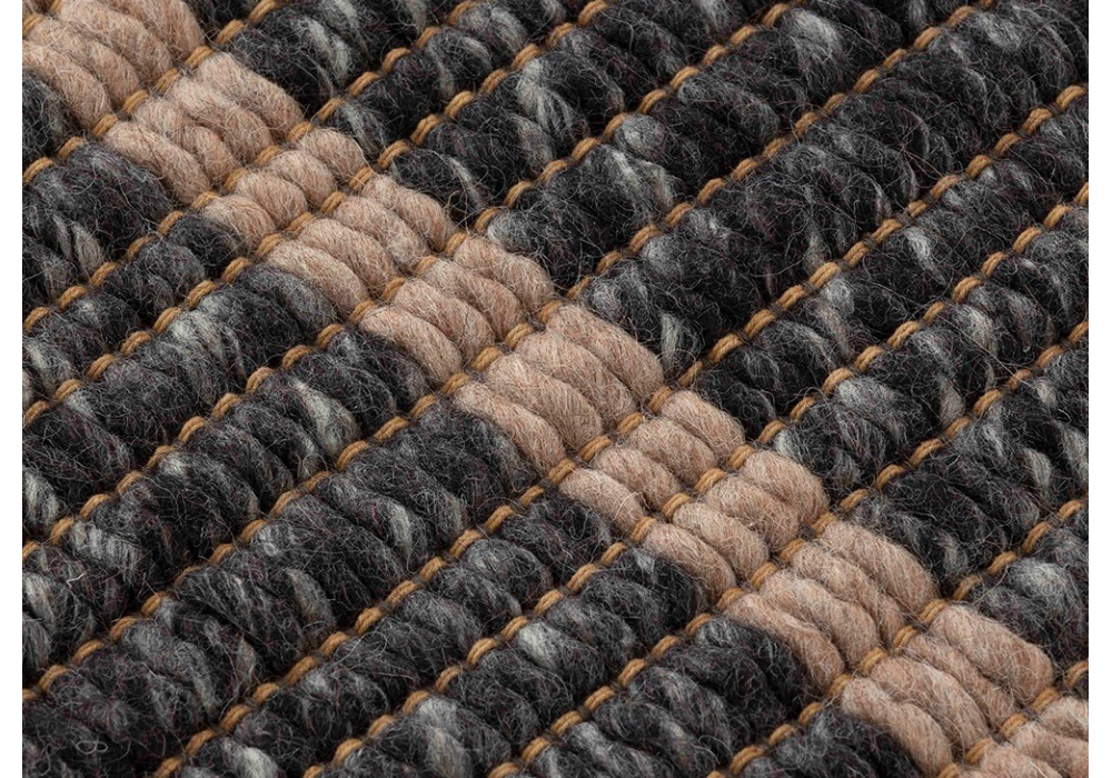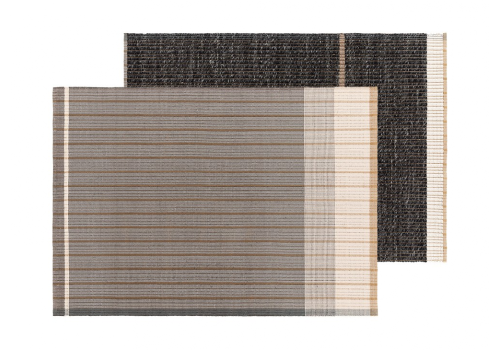 Reversible Black von Charlotte Lancelot für Gan entworfen, ist ein Teppich, der aus Garnen unterschiedlicher Stärke und Materialien gefertigt ist, mit einer Seite aus 100 % reiner Schurwolle und der anderen aus Leinen.